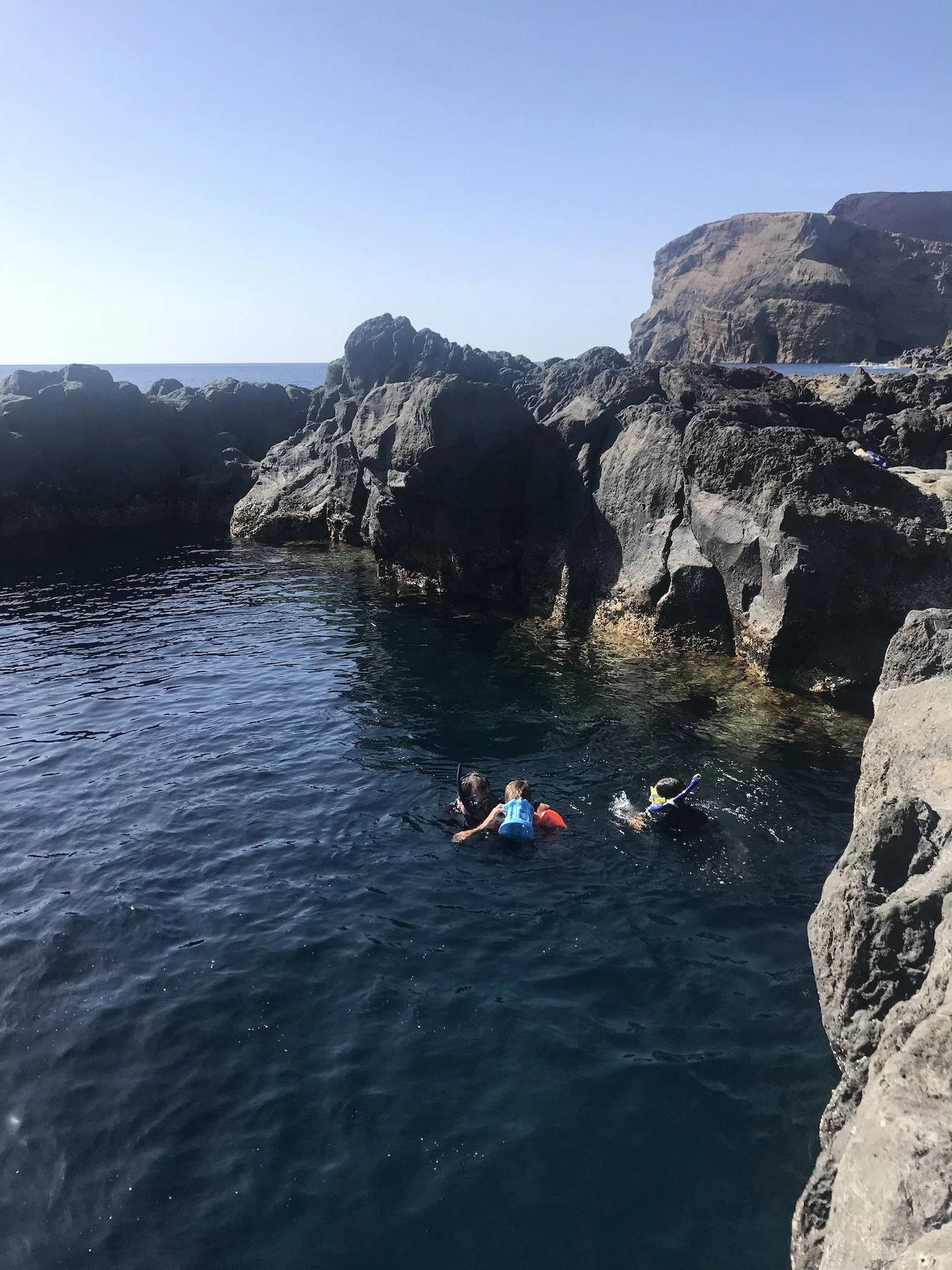Snorkelling: We snorkelled near the volcano, which in itself is a crazy idea the kids absolutely loved. The hardened lava made for fun jumping platforms and holes. There are so many gorgeous swimming spots in Faial with few people around (even in August).